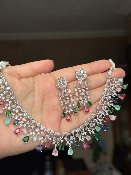 Hira - AD necklace with earrings available in 7 colours