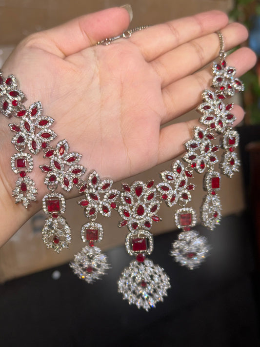 Inaya - AD necklace with Bali Jhumke and Tikka Colours available