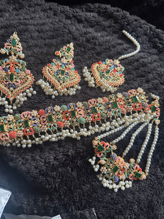 Nura - Choker set with jhumar, earrings and tikka 2 colours available