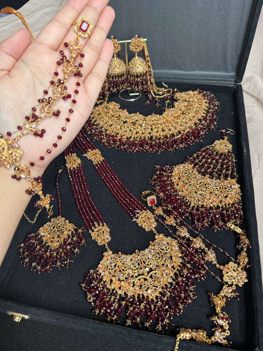 MAYA - Bridal set | includes Necklace with Mala, 2x hand pieces, Jhumar, Jhumke, Tikka and a FREE nose ring | for customisation DM us!
