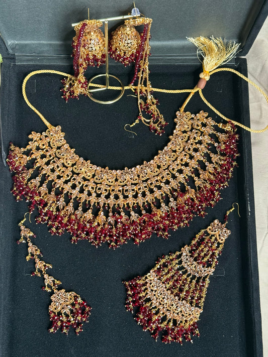 Haya - Heavy Bridal set | Necklace with jhumar, jhumke and tikka