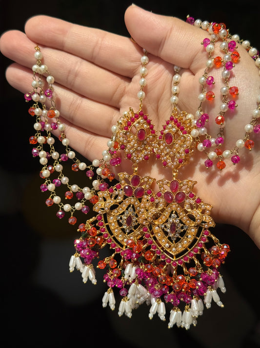 SAIYARA - Bridal set | includes Necklace with jhumar, jhumke, tikka and nose ring. Pakistani bridal jewellery
