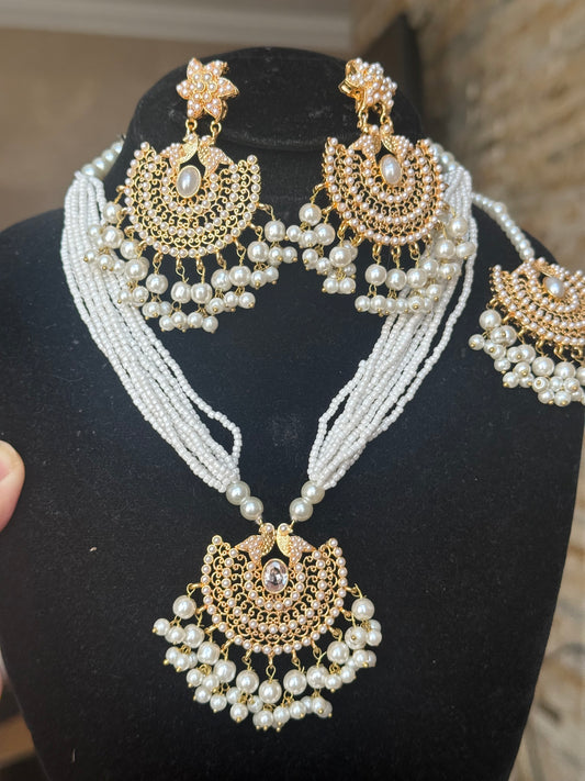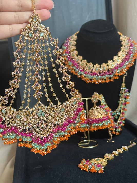 AHLAM - Bridal set | includes Necklace with jhumke, jhumar & Tikka | available in 4 colours