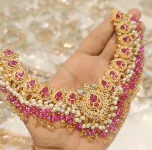 JANNAT - Heavy Bridal set | includes: choker, Necklace, jhumar, Jhumke and Tikka | Maroon colour available