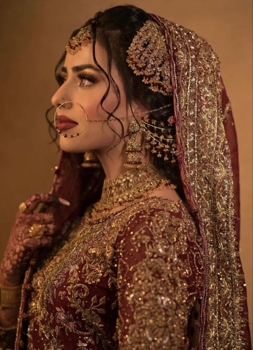 SANWAL - 6 Pieces set | includes: Mala, Necklace, Jhumar, Jhumke, Tikka & Nose ring | available in Maroon Gold colour