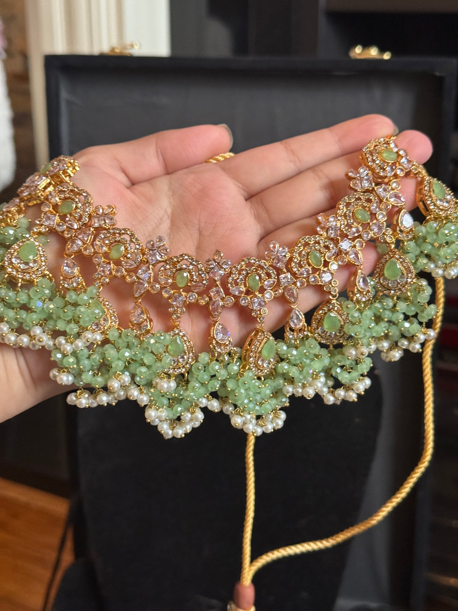 AHLAM - Bridal set | includes Necklace with jhumke, jhumar & Tikka | available in 4 colours
